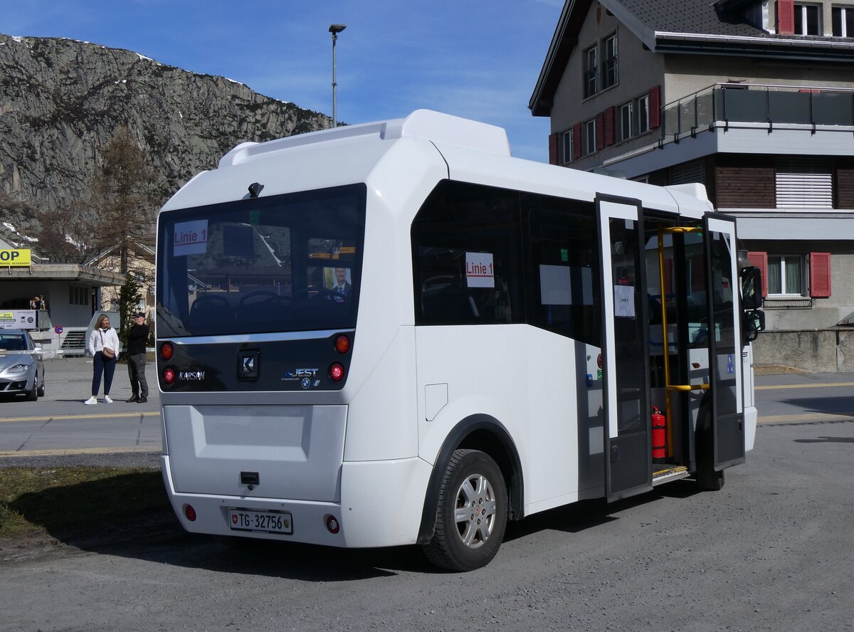(261'027) - Thur-Taxi, Weinfelden - TG 32'756 - eKarsan am 6. April 2024 in Andermatt, Gemsstockbahn (Einsatz Andermatt-Urserntal Tourismus, Andermatt)