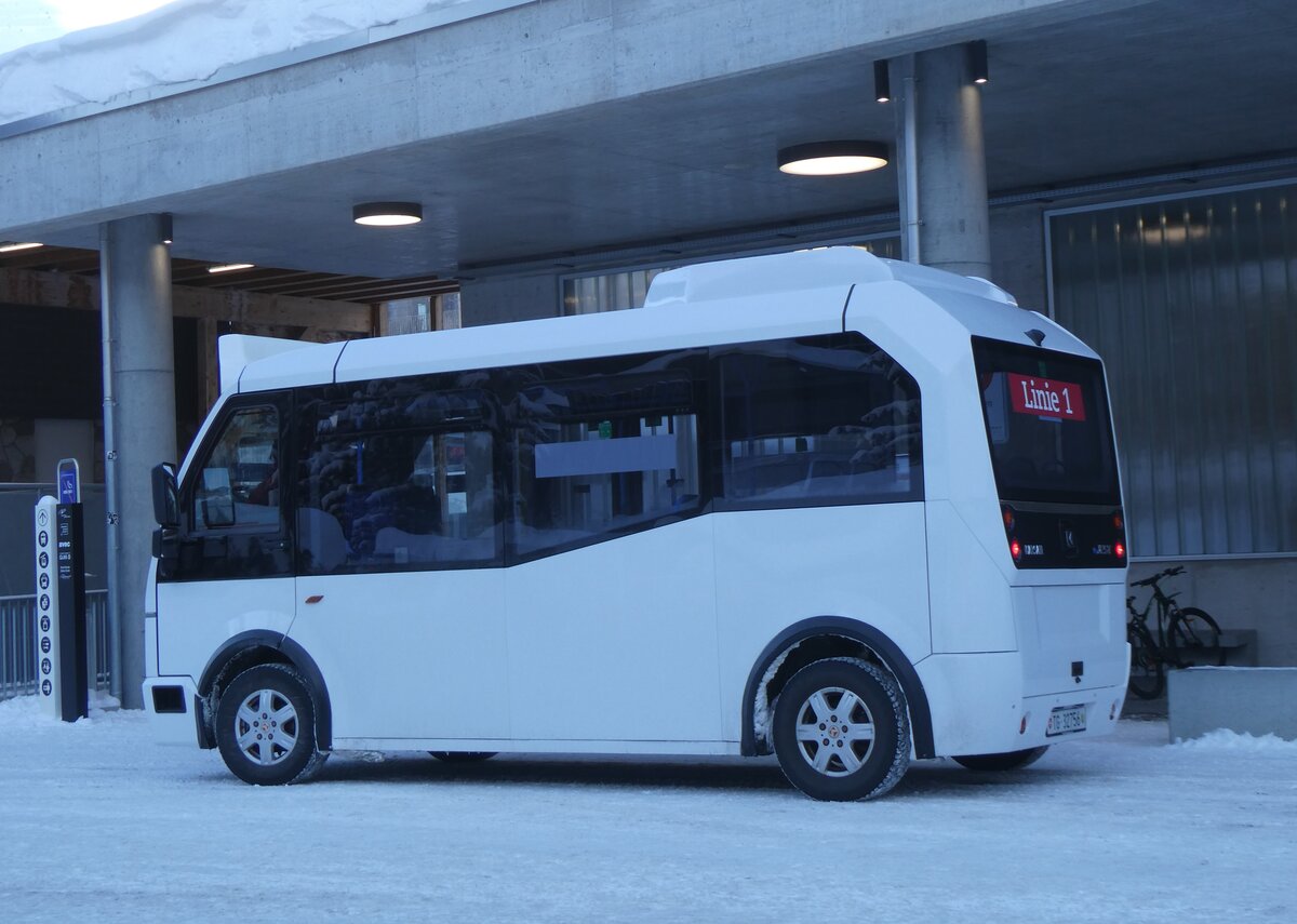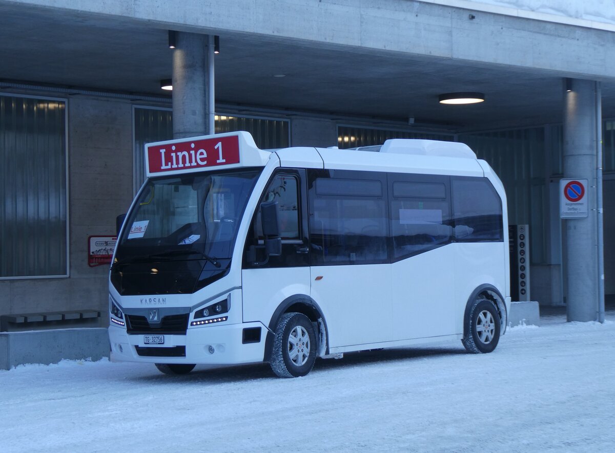 (271'135) - Thur-Taxi, Weinfelden - TG 32'756 - eKarsan am 14. Januar 2025 beim Bahnhof Andermatt (Einsatz Andermatt-Urserntal Tourismus, Andermatt)
