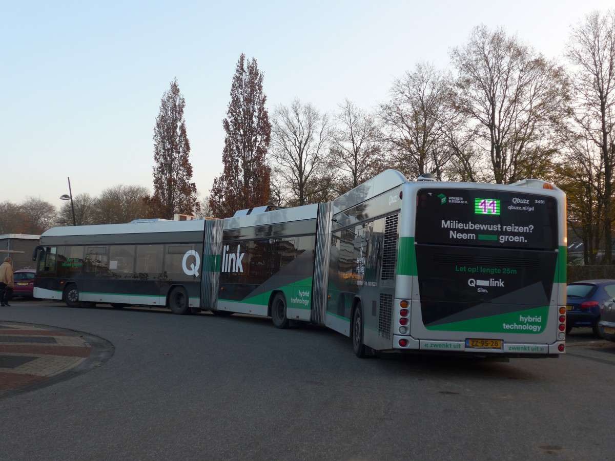 (156'893) - Qbuzz, Groningen - Nr. 3491/ZZ-95-28 - Hess am 19. November 2014 beim Bahnhof Zuidhorn