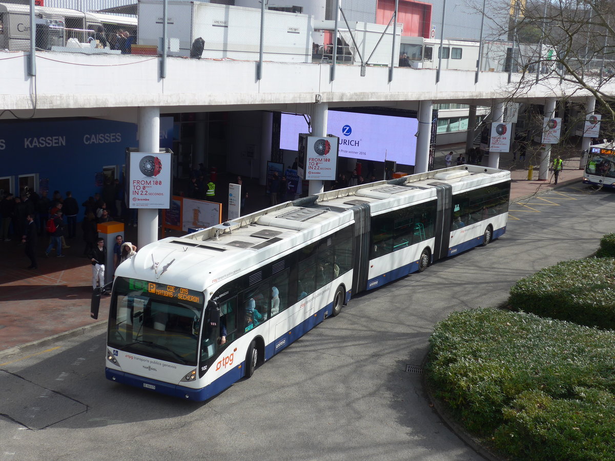 (178'871) - TPG Genčve - Nr. 102/GE 960'079 - Van Hool am 11. März 2017 in Genčve, Palexpo