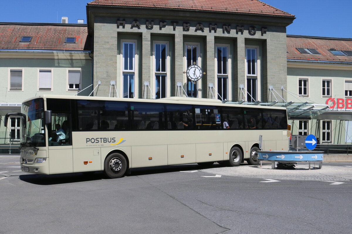PostBus - Mercedes Benz Integro L am 28. Juli 2023 in Villach (Aufnahme: Martin Beyer)