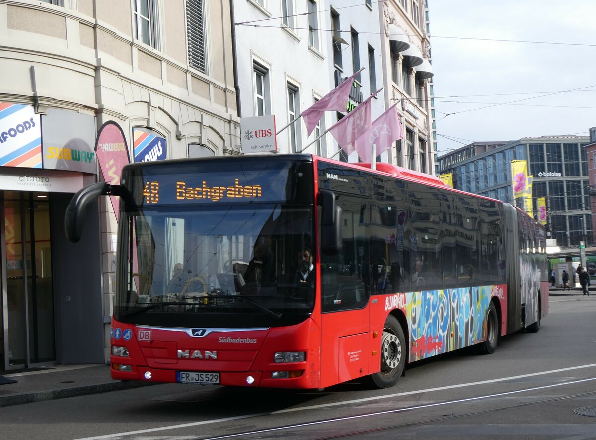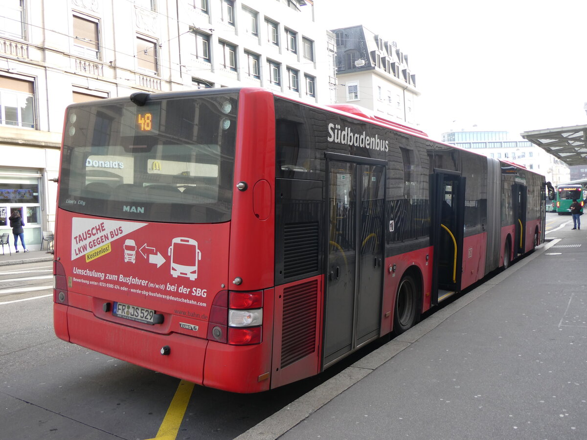 (259'029) - Aus Deutschland: SBG Freiburg - FR-JS 529 - MAN am 30. Januar 2024 beim Bahnhof Basel