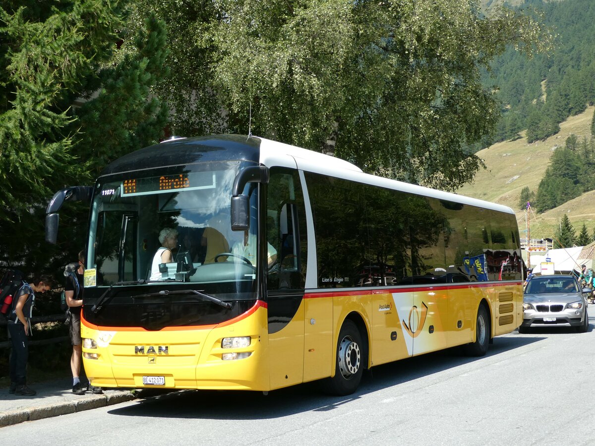 (209'850) - PostAuto Bern - BE 485'297 - Iveco am 28. September 2019 beim Bahnhof Ulrichen