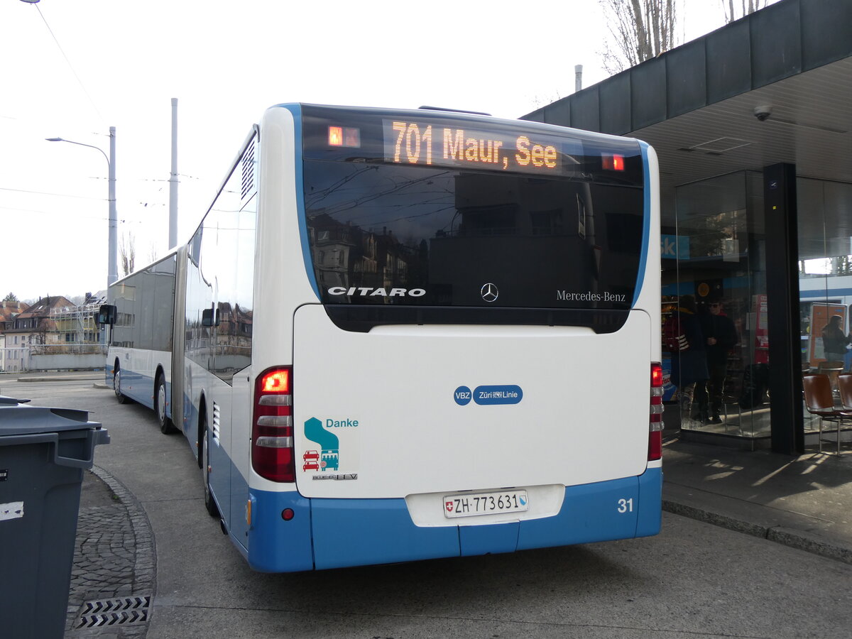 (260'163) - ATE Bus, Effretikon - Nr. 31/ZH 773'631 - Mercedes am 4. März 2024 in Zürich, Klusplatz