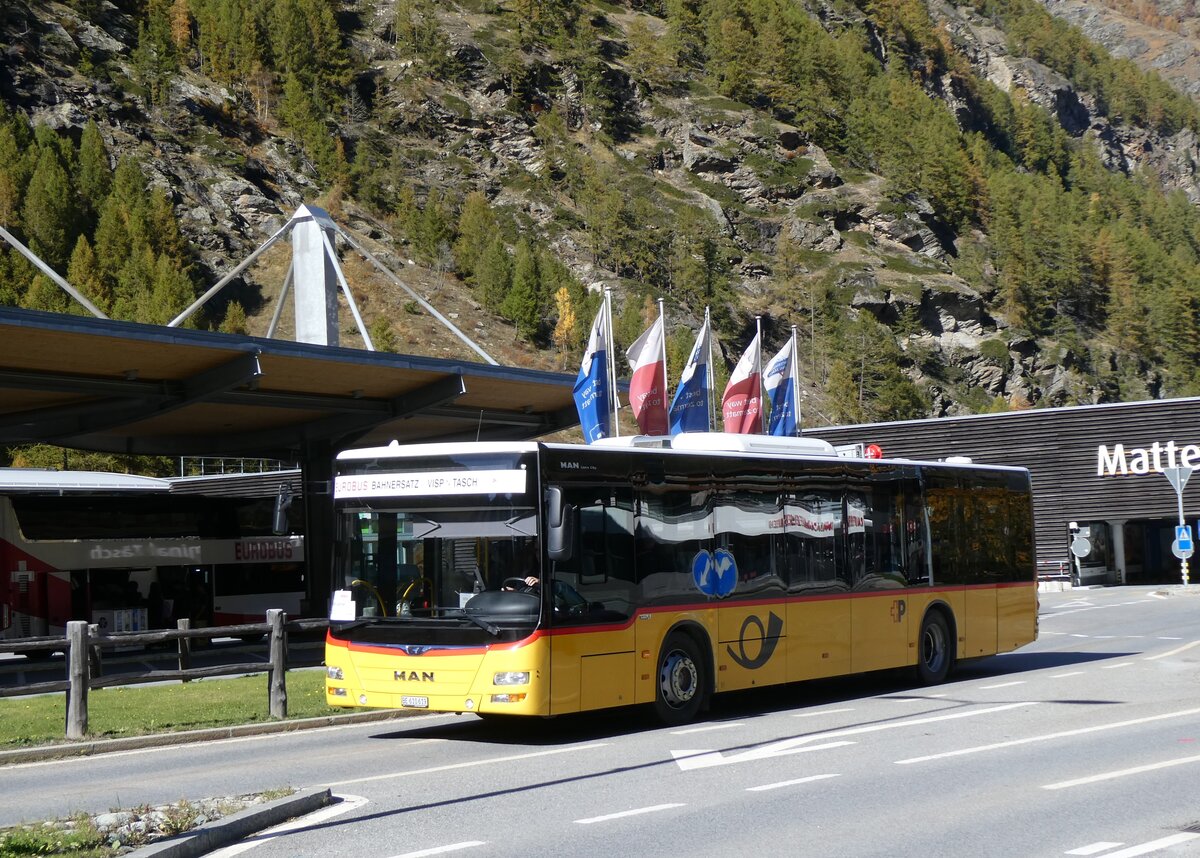 (268'363) - Funi-Car, Biel - Nr. 19/BE 610'619/PID 10'944 - MAN am 21. Oktober 2024 beim Bahnhof Täsch