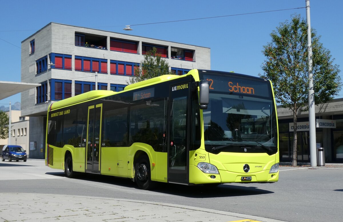 (278'648) - Aus Liechtenstein: BOS PS Anstalt, Vaduz - Nr. 553/FL 40'220 - Mercedes (ex PLA Vaduz Nr. 48/PID 11'170) am 8. August 2025 beim Bahnhof Buchs