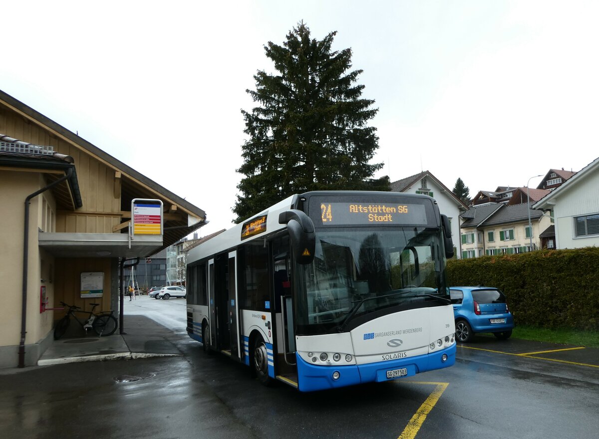 (249'108) - BSW Sargans - Nr. 319/SG 297'503 - Solaris am 25. April 2023 beim Bahnhof Gais