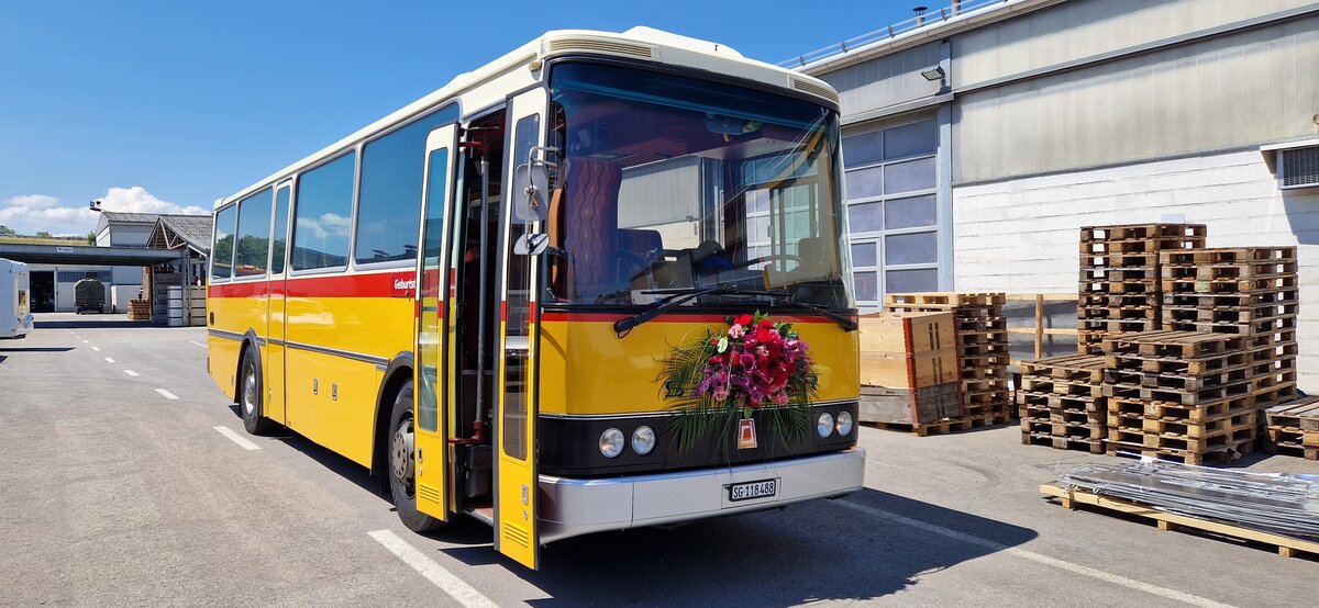 (196'375) - Soltermann, Niederuzwil - SG 118'489 - FBW/Hess (ex Tiemann, Hombrechtikon Nr. 10; ex AAGU Altdorf Nr. 10) am 2. September 2018 beim Bahnhof Biglen