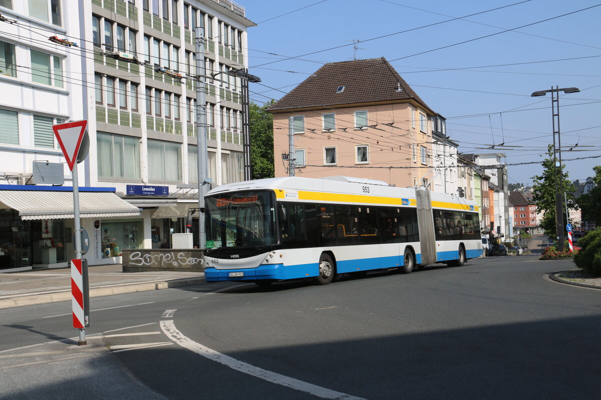 SWS Solingen - Nr. 953/SG-SW 953 - Hess/Hess Gelenktrolleybus am 19. Juni 2022 in Solingen (Aufnahme: Martin Beyer)