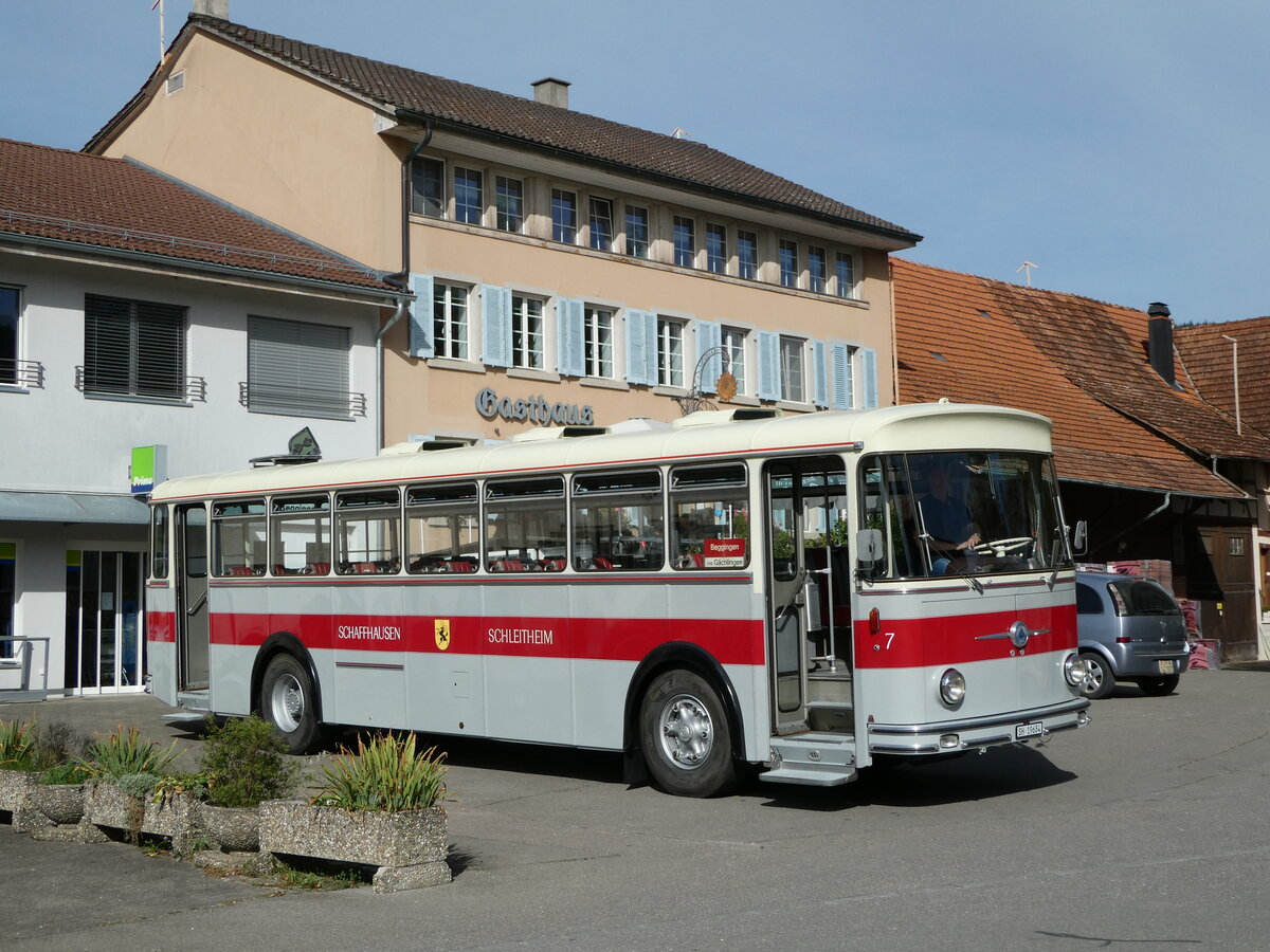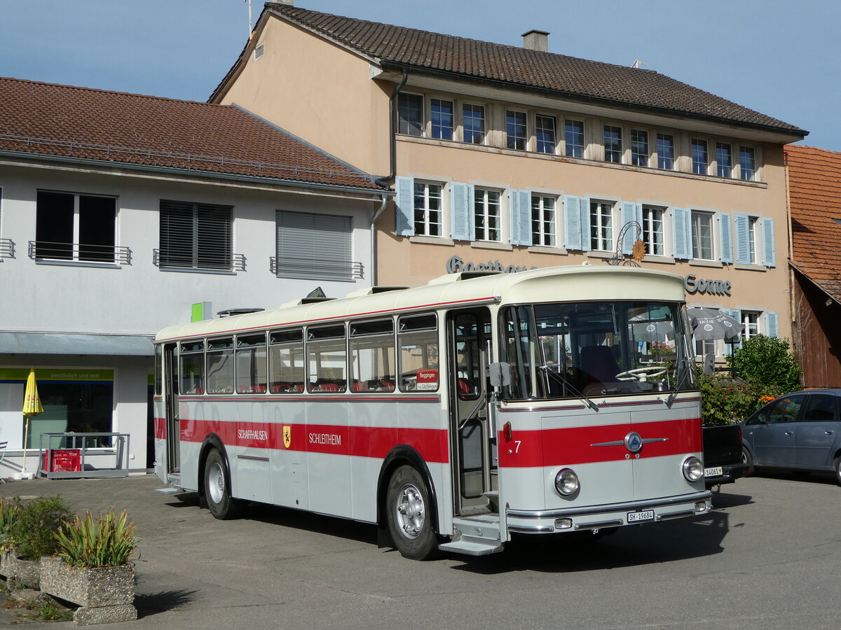(228'409) - Borer, Neuhausen - SH 19'684 - Saurer/Tüscher (ex Schöttler, D-Köln; ex Braun, D-Münster; ex Schmid, Hemishofen; ex Brütsch, Büttenhard; ex ASS Schleitheim Nr. 8) am 26. September 2021 in Beggingen, Dorf