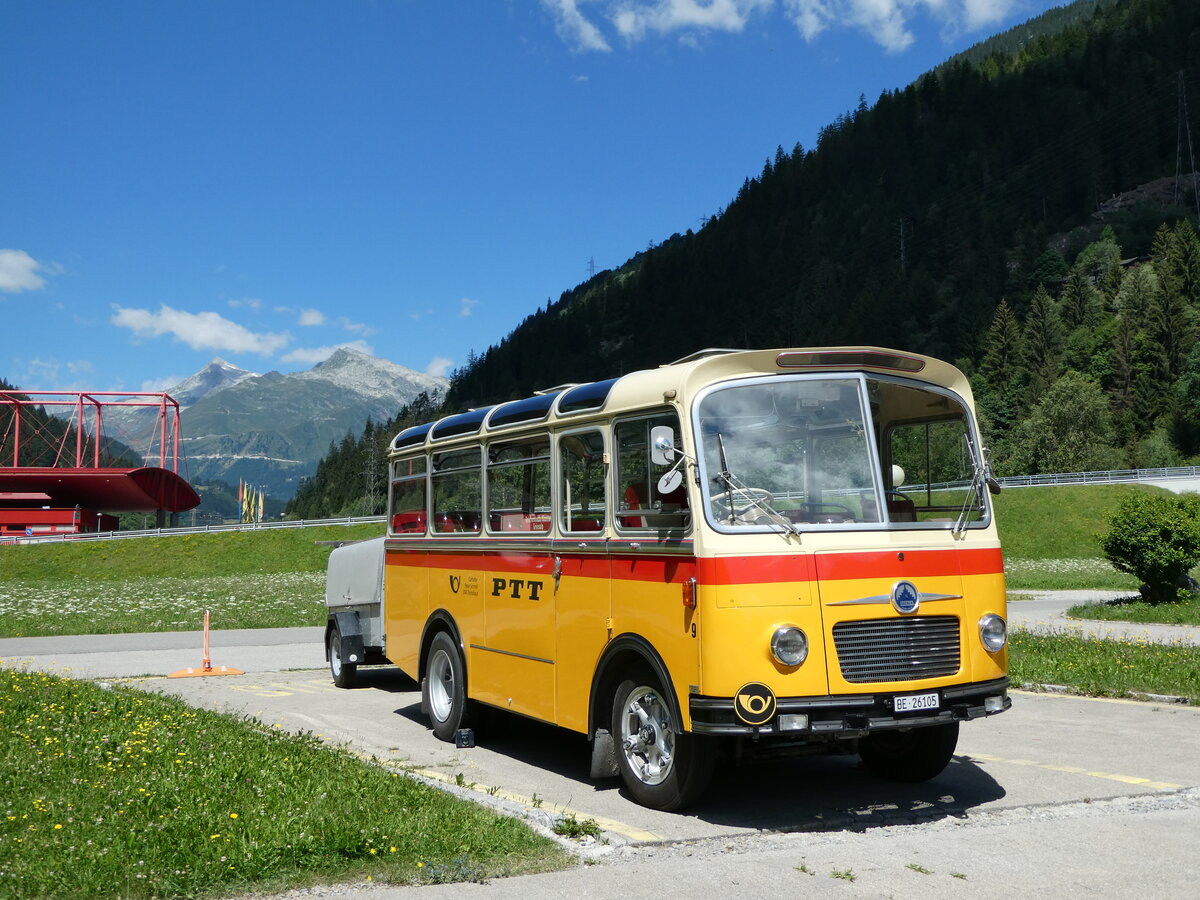(237'955) - Schmid, Thörishaus - Nr. 9/BE 26'105 - Saurer/R&J (ex Geiger, Adelboden Nr. 9) am 10. Juli 2022 in Piotta, Hotel Motel Gottardo Sud