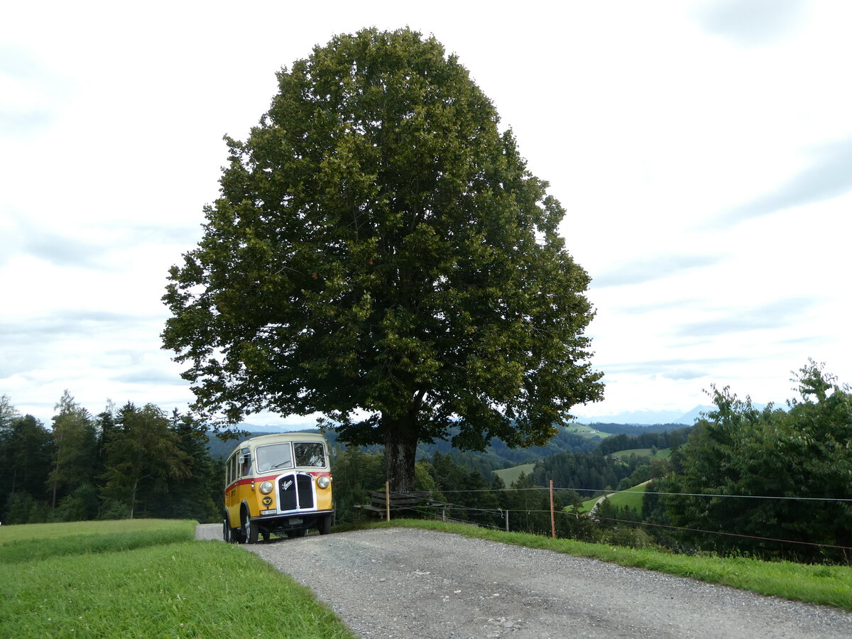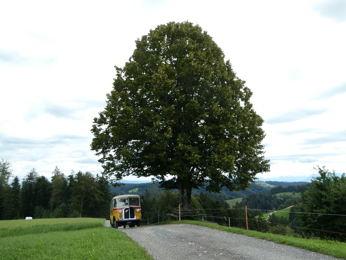 (253'573) - Schmid, Thörishaus - Nr. 3/BE 26'760 - Saurer/Gangloff (ex Geiger, Adelboden Nr. 3) am 9. August 2023 in Bigenthal, Hellweid