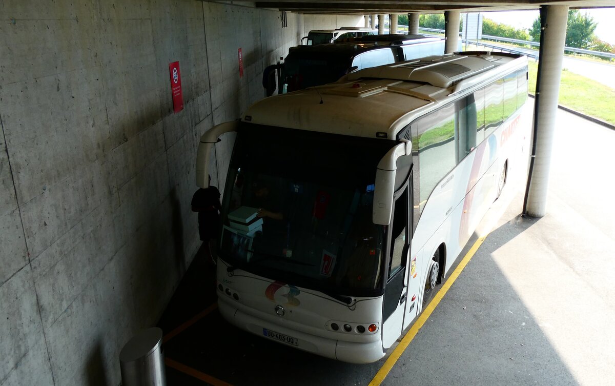 (279'135) - Aus Georgien: ??? - UU-403-UQ - Irisbus (ex Charterbus, I-Milano Nr. 913) am 17. August 2025 in Avry-devant-Pont, Autobahnraststätte