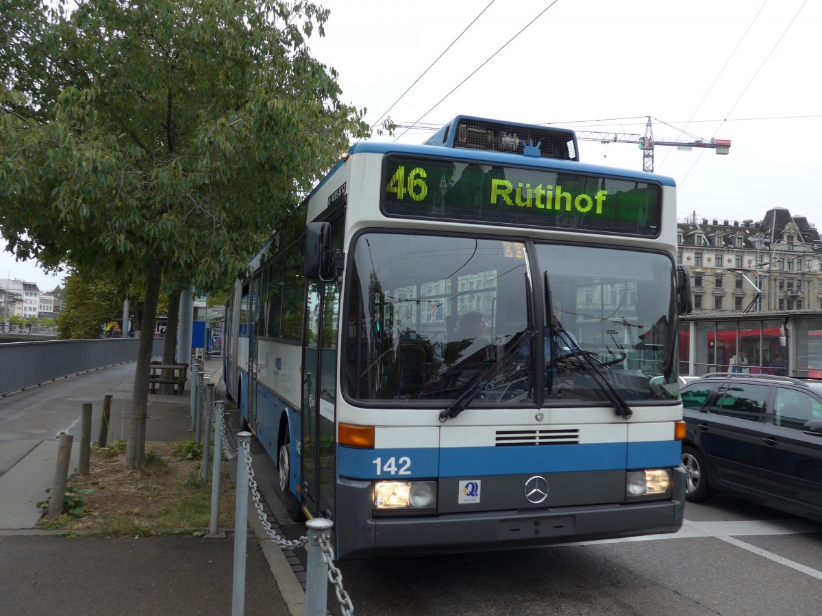 (164'979) - VBZ Zürich - Nr. 142 - Mercedes Gelenktrolleybus am 17. September 2015 in Zürich, Bahnhofquai/Hauptbahnhof