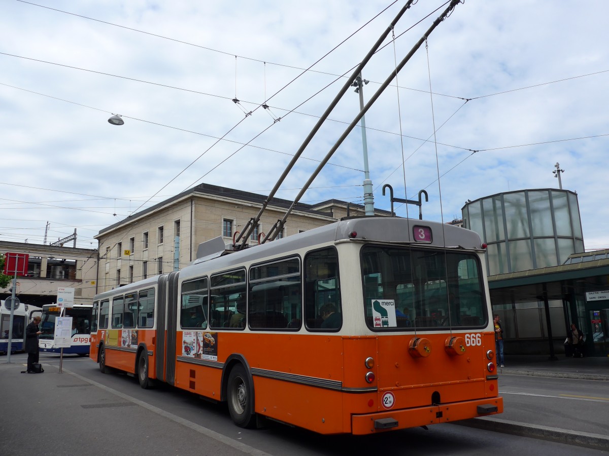 (150'894) - TPG Genève - Nr. 666 - Saurer/Hess Gelenktrolleybus am 26. Mai 2014 beim Bahnhof Genève