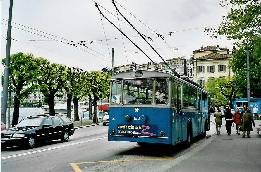 (045'930) - ACT Lugano - Nr. 120 - Volvo/Hess Trolleybus am 23. April 2001 in Lugano, Piazza Manzoni