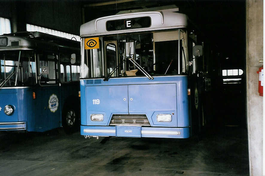 (046'022) - ACT Lugano - Nr. 119 - Volvo/Hess Trolleybus am 23. April 2001 in Pregassona, Deposito