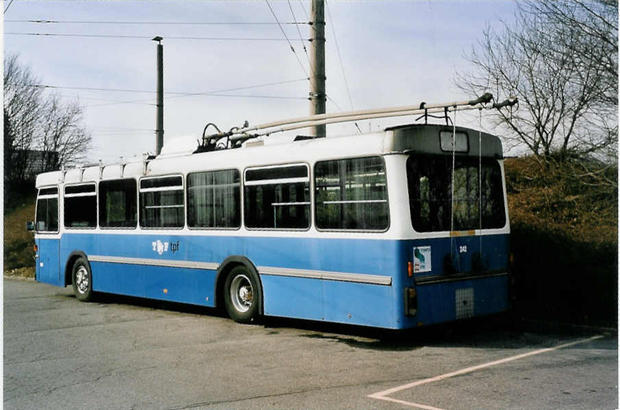 (052'026) - TPF Fribourg - Nr. 342 - Volvo/Hess Trolleybus (ex TF Fribourg Nr. 42) am 17. Februar 2002 in Fribourg, Garage