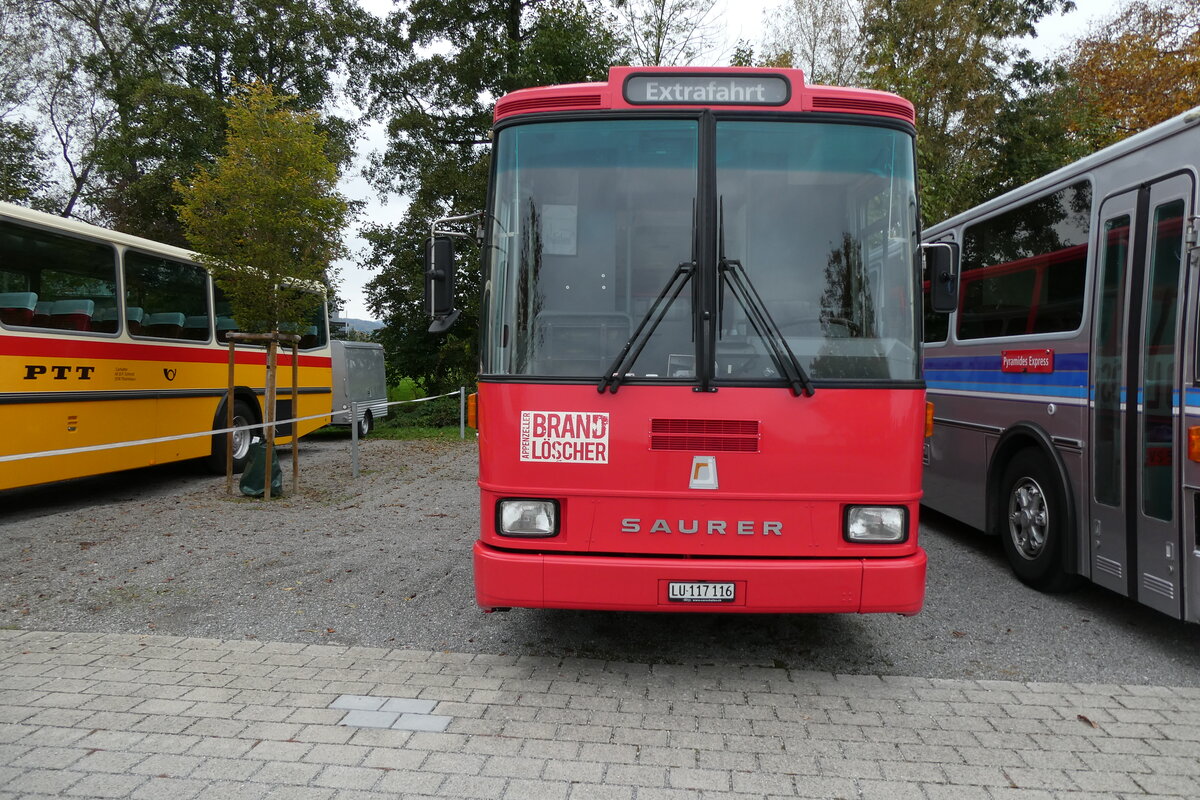 (266'351) - Party-Bus, Grosswangen - LU 117'114 - Saurer/R&J (ex Hüsler, Rickenbach PID 2610) am 31. August 2024 in Oberkirch, CAMPUS Sursee