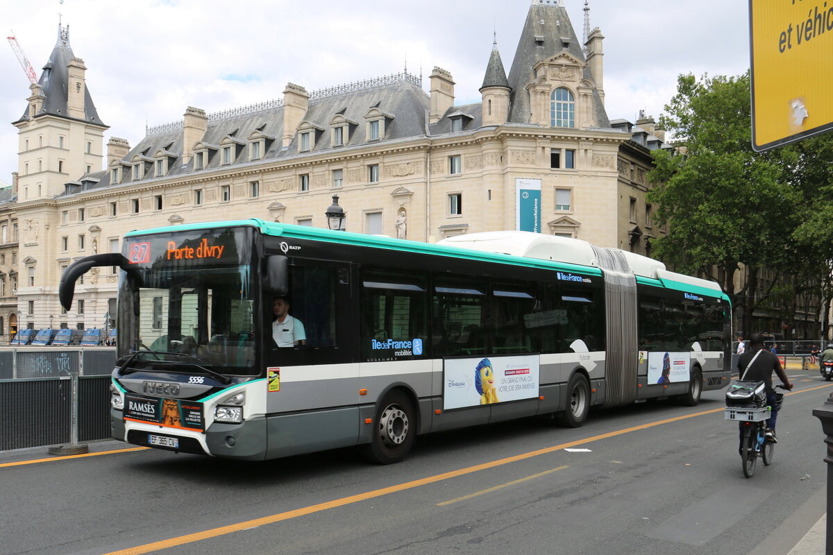 RATP Paris - Nr. 5556/EF 365 CV - Iveco Urbanway 18 Hybrid am 19. Juli 2023 in Paris (Aufnahme: Martin Beyer)