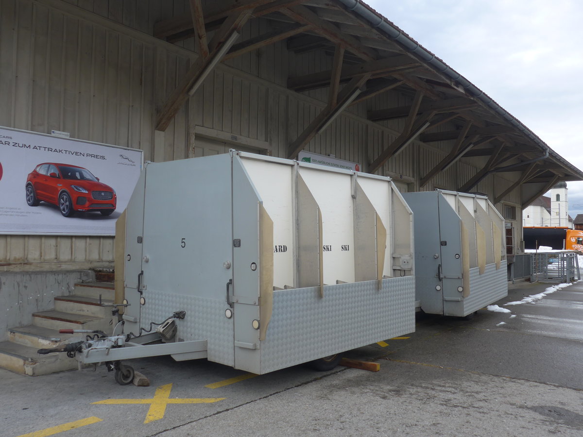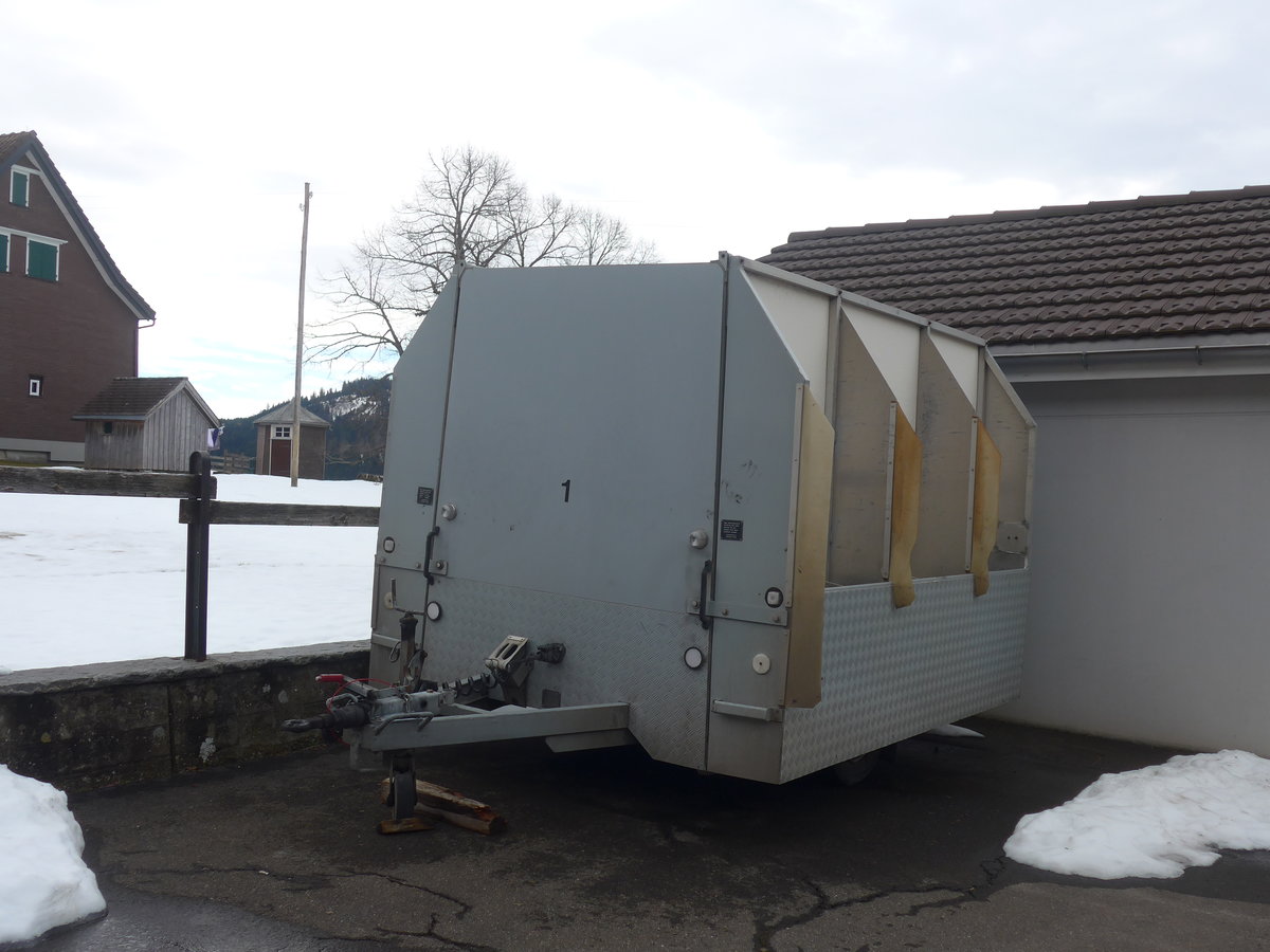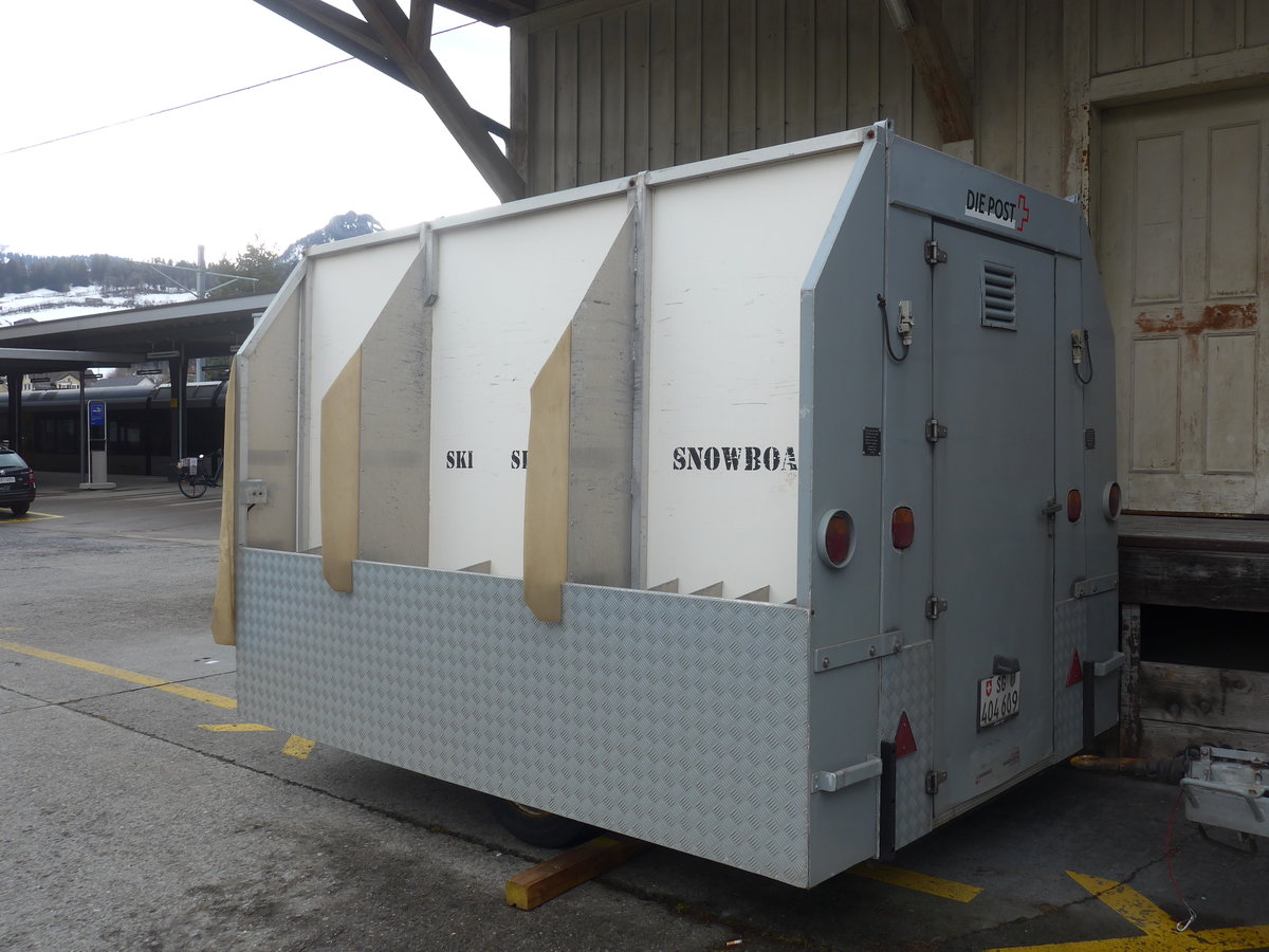 (214'036) - PostAuto Ostschweiz - Nr. 4/SG 404'592 - Sanwald Gepäckanhänger (ex P 31'134) am 1. Februar 2020 beim Bahnhof Nesslau-Neu St. Johann
