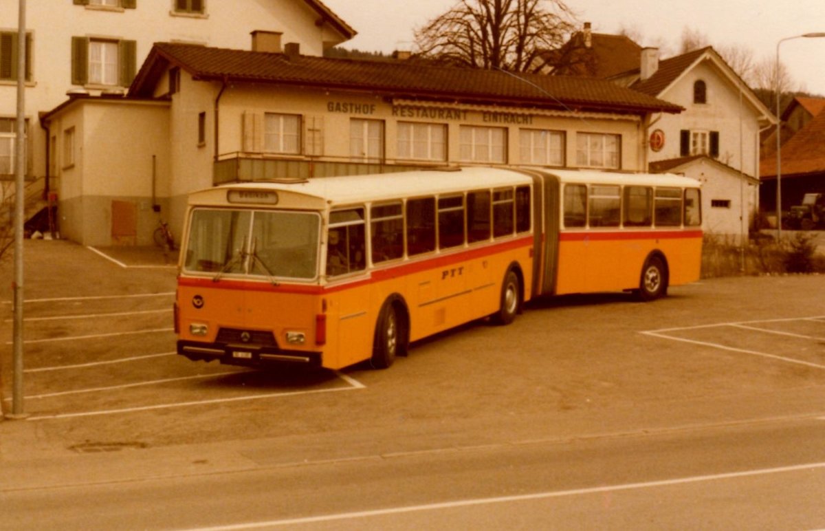 (MD157) - Aus dem Archiv: Steffen, Remetschwil - Nr. 8/AG 6180 - Saurer/Hess um 1982 in Bellikon, Restaurant Eintracht