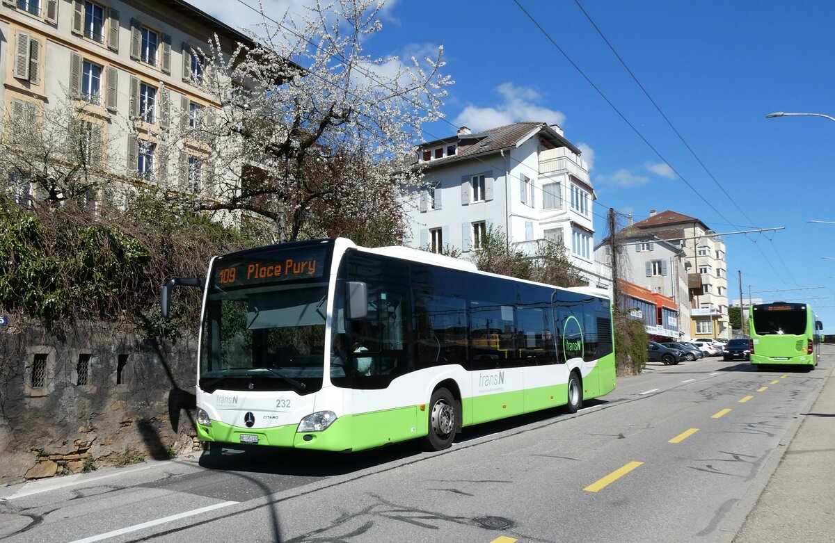 (285'950) - transN, La Chaux-de-Fonds - Nr. 232/195'232 - Mercedes am 4. April 2026 beim Bahnhof Neuchâtel