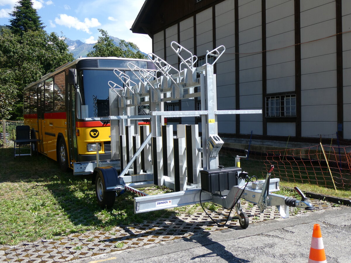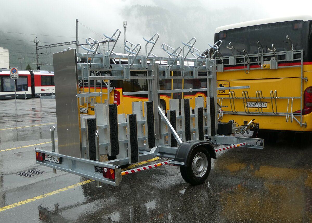 (265'624) - PostAuto Bern - BE 589'378 - Zbinden Veloanhänger am 13. August 2024 in Meiringen, Garage