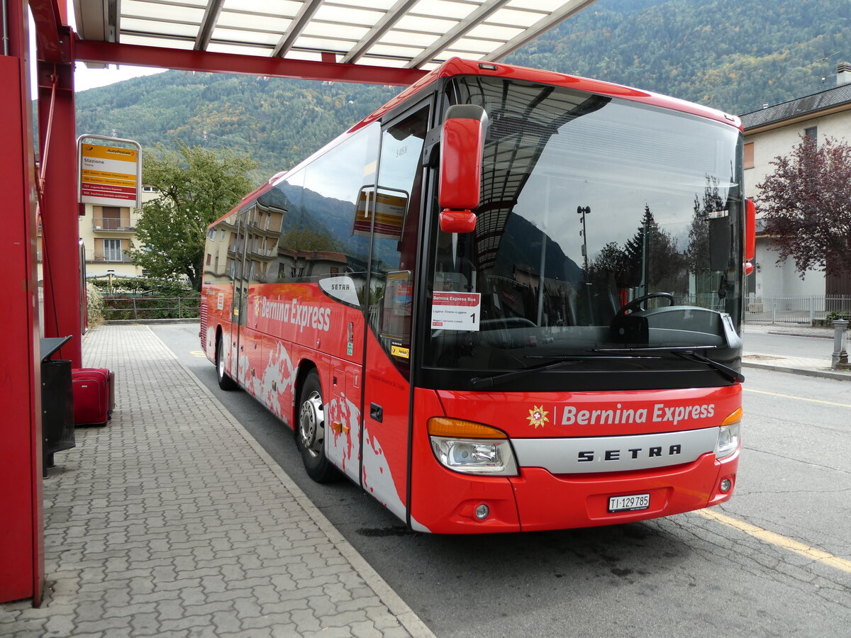 (241'229) - Aus der Schweiz: Autopostale, Croglio - TI 129'785 - Setra (ex PostAuto Graubünden) am 13. Oktober 2022 beim Bahnhof Tirano