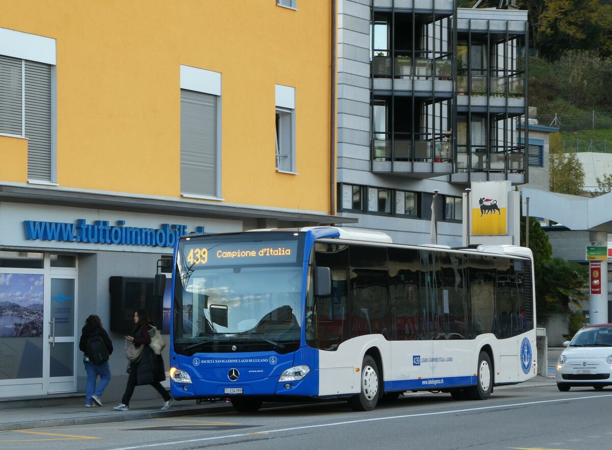 (242'827) - SNLL Lugano - TI 234'999 - Mercedes am 16. November 2022 beim Bahnhof Melide
