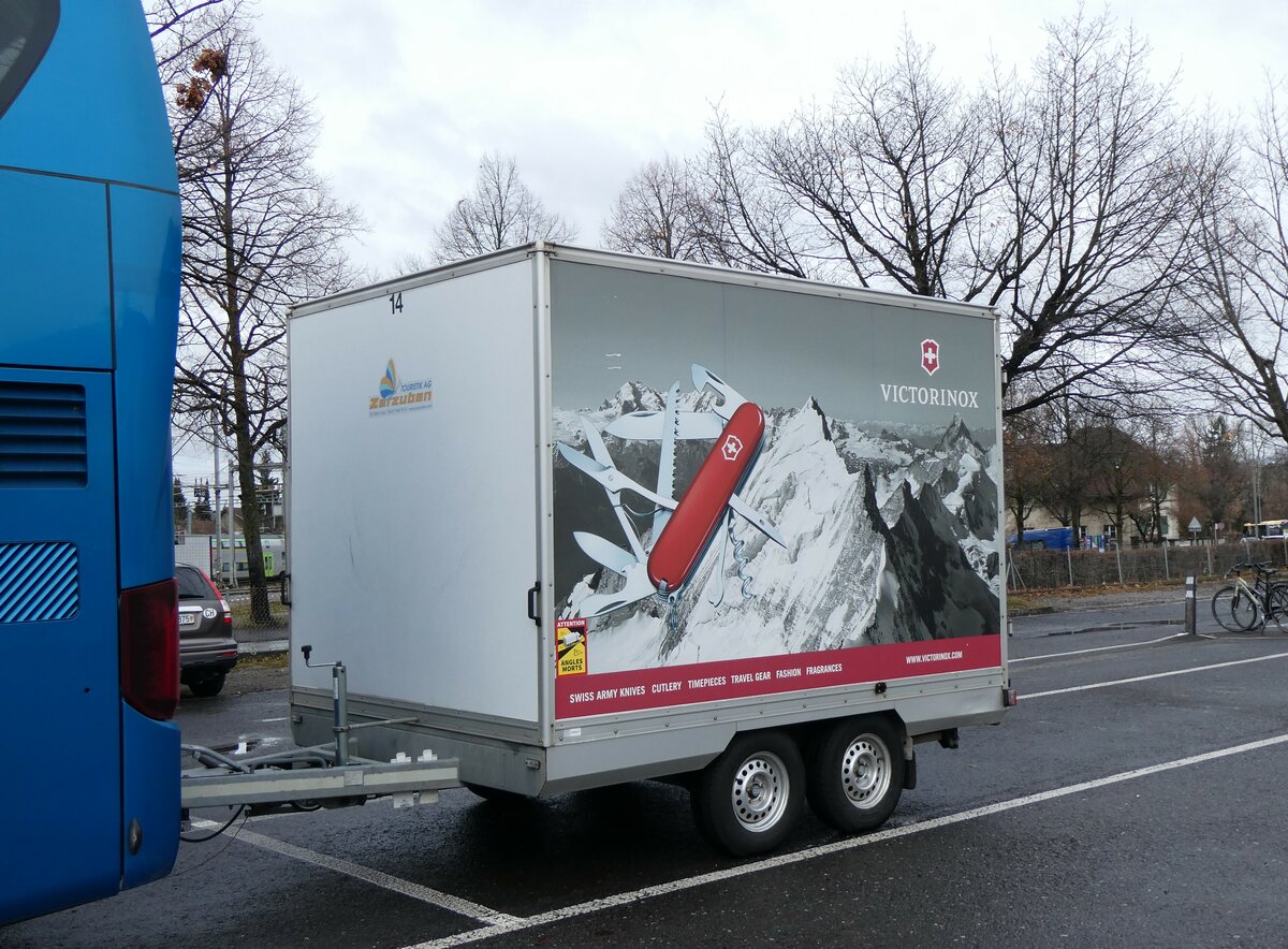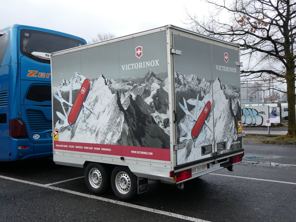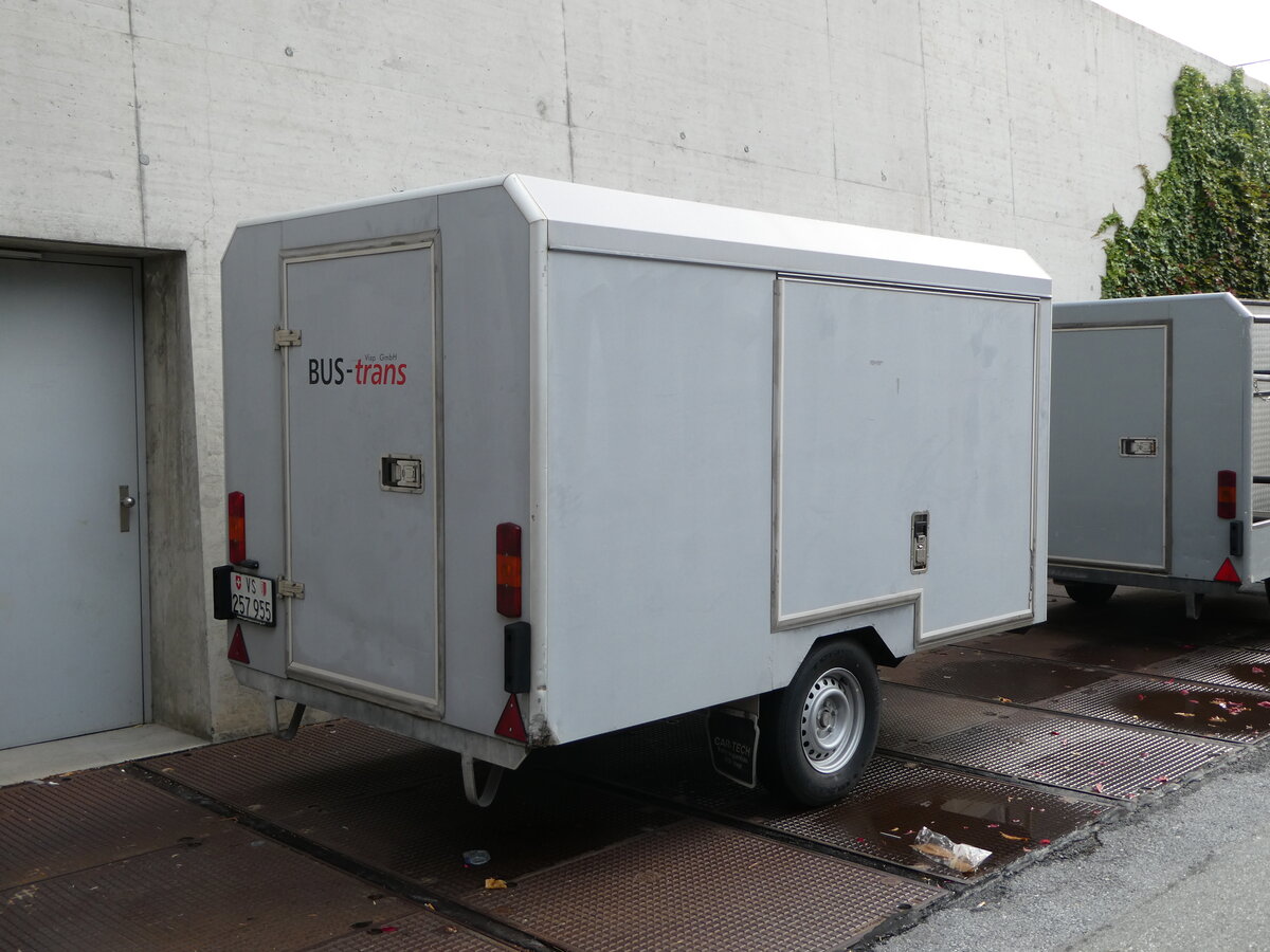(201'928) - PostAuto Wallis - VS 258'988 - Car-Tech Gepäckanhänger am 3. März 2019 beim Bahnhof Brig