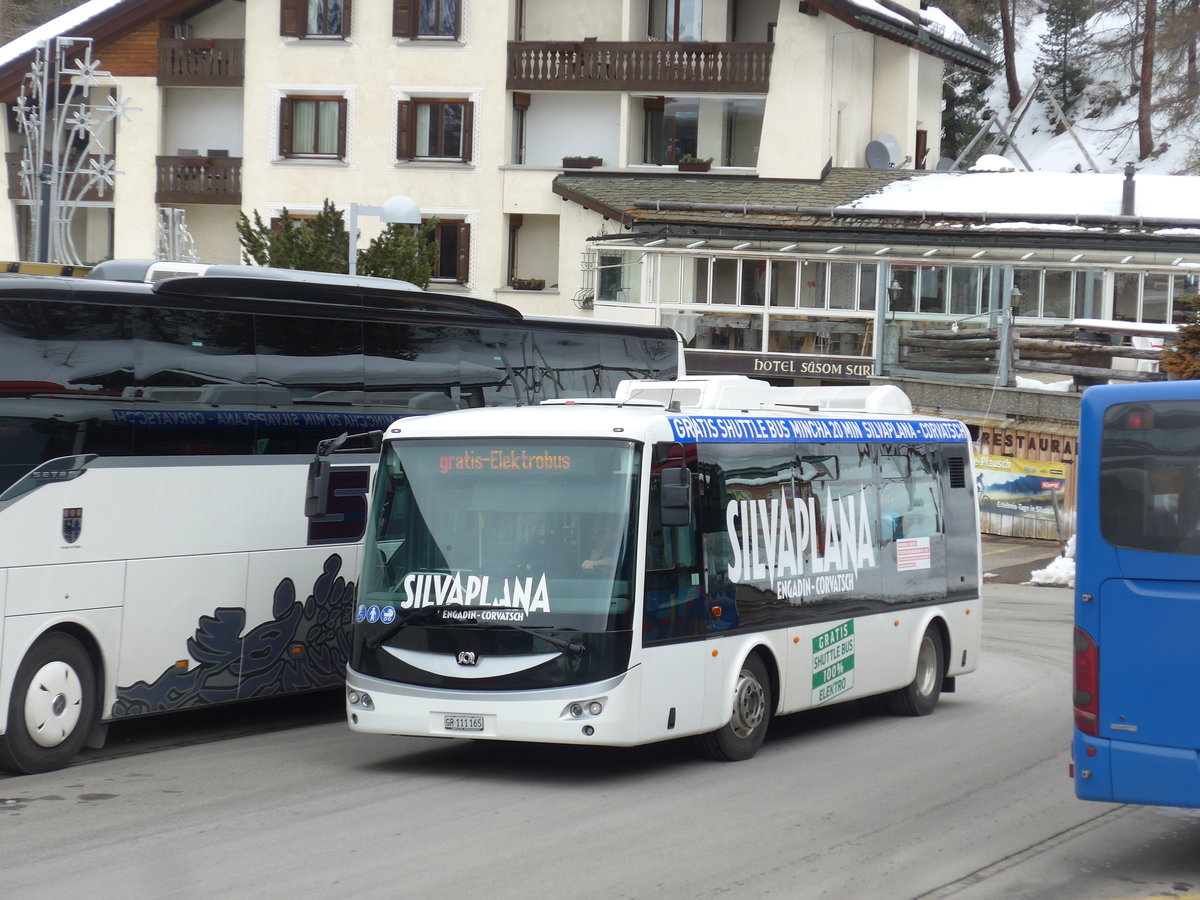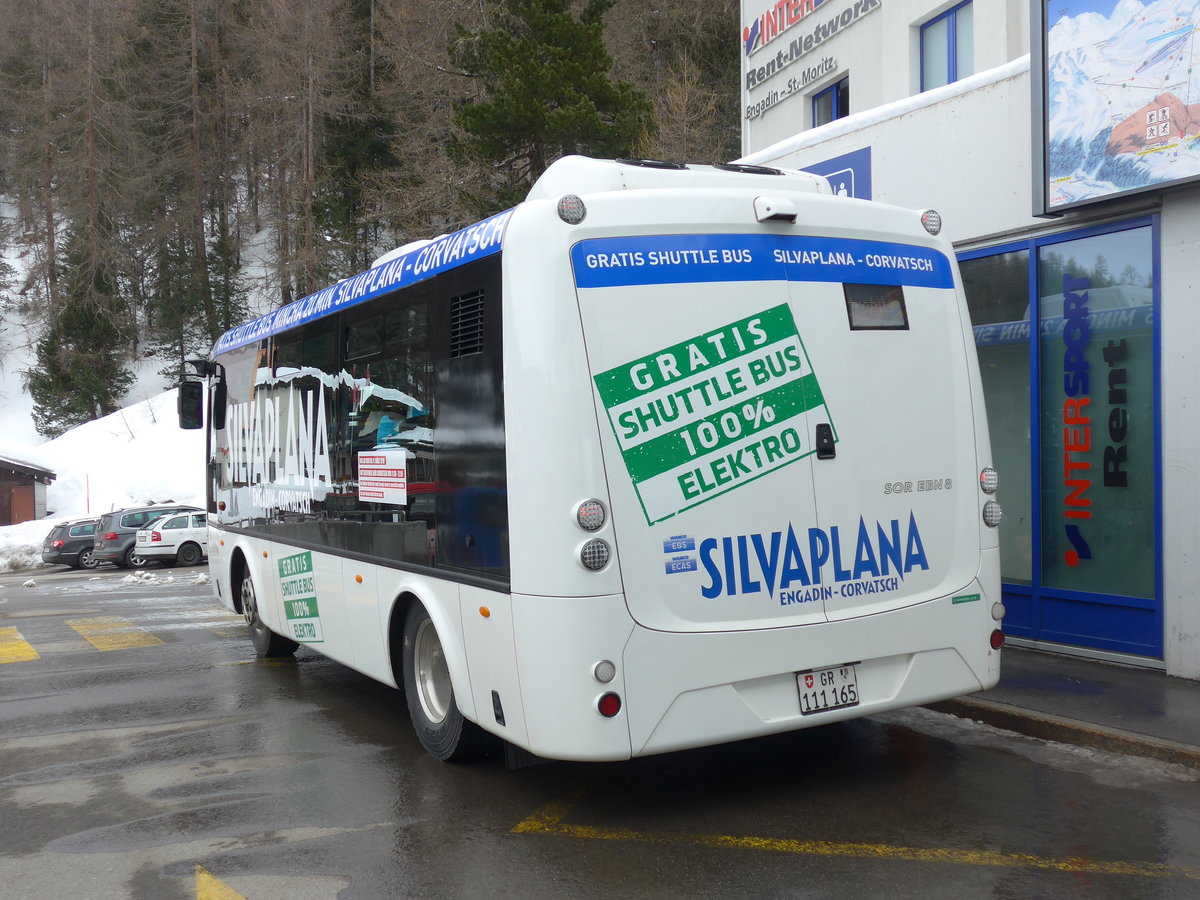 (202'097) - Corvatsch Power, Silvaplana - GR 111'165 - SOR (ex VBZ Zürich Nr. 192) am 10. März 2019 in Surlej, Corvatschbahn