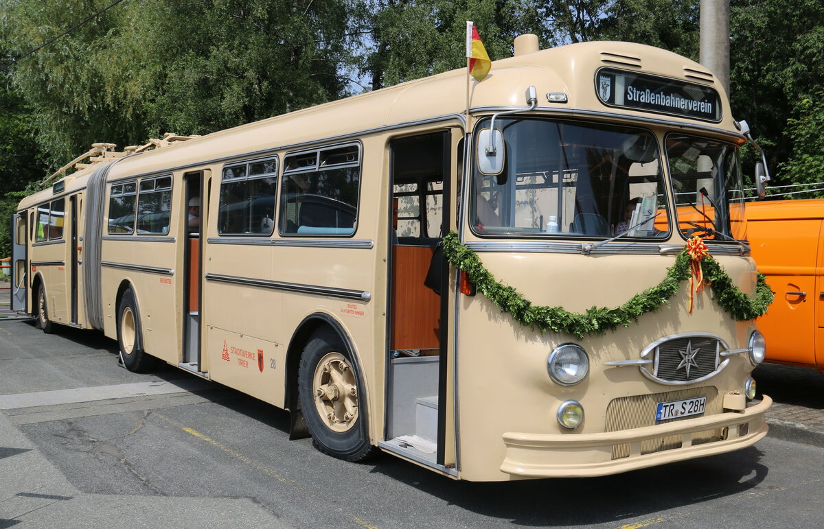 SWT Trier - Nr. 28/TR-S 28H - Henschel Gelenktrolleybus (1969: Umbau zum Dieselbus) am 19. Juni 2022 in Solingen (Aufnahme: Martin Beyer) Markus Doyon