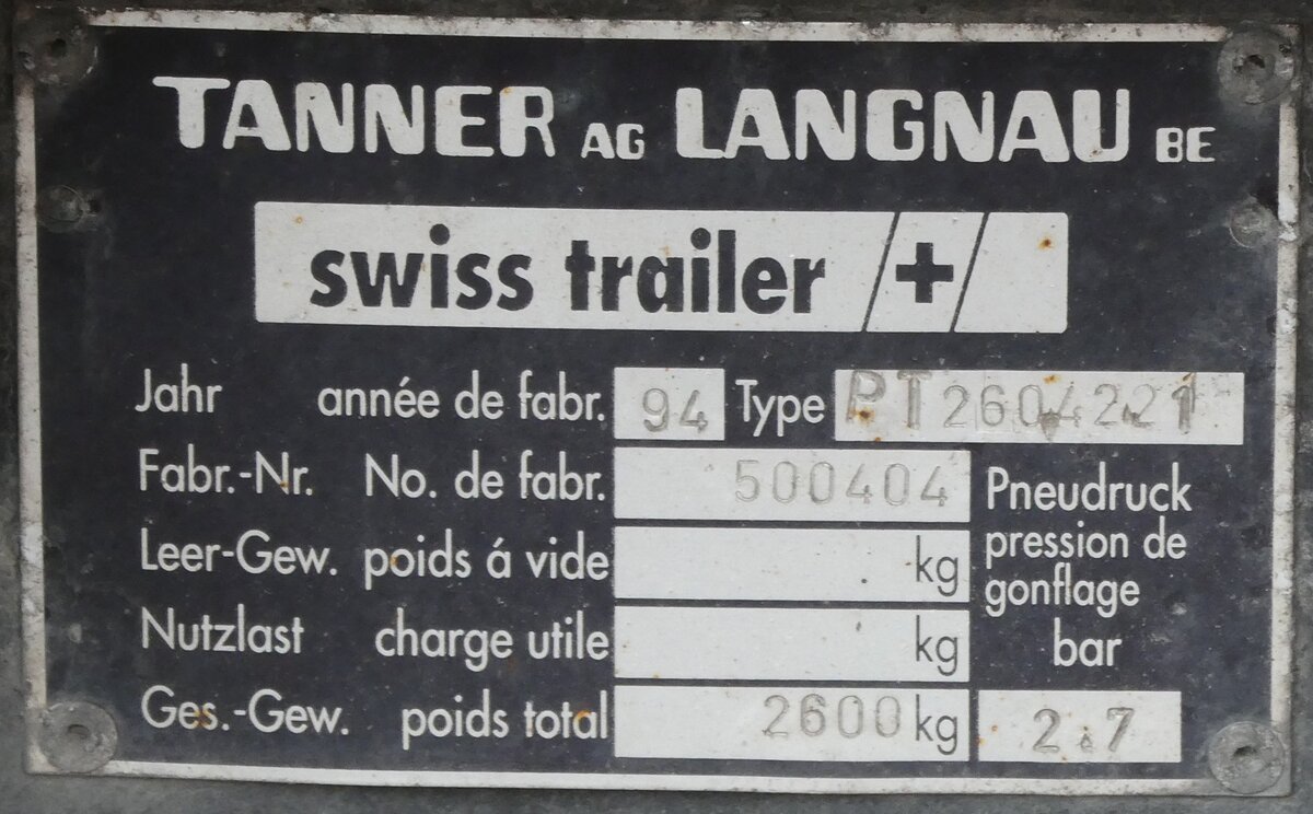 (264'606) - Typenschild - P 2076 - am 10. Juli 2024 in Kreypau, Unvollendete Brücke