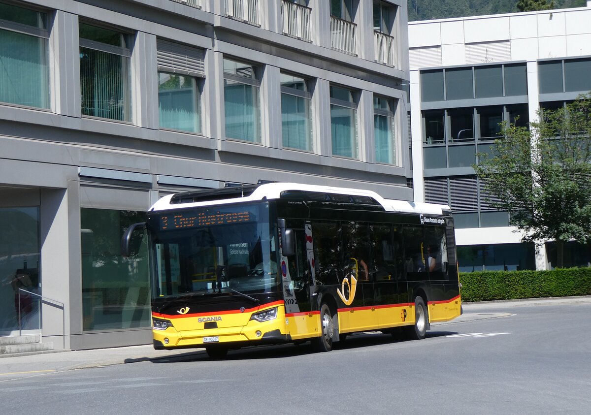 (266'214) - Dünser, Trimmis - GR 27'692/PID 11'894 - eScania (ex GR 166'037) am 27. August 2024 beim Bahnhof Landquart