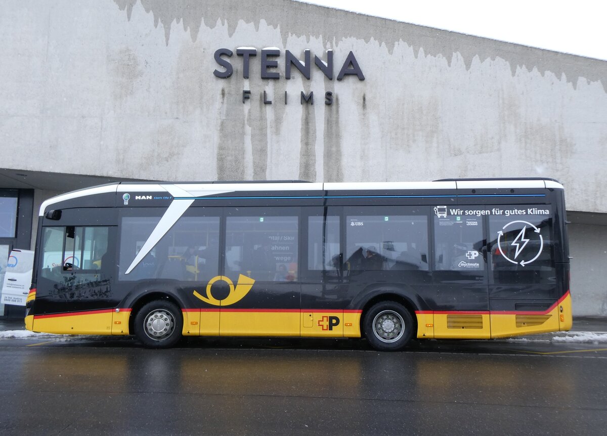 (272'898) - PostAuto Graubünden - GR 187'350/PID 12'106 - eMAN am 14. März 2025 in Flims, Bergbahnen