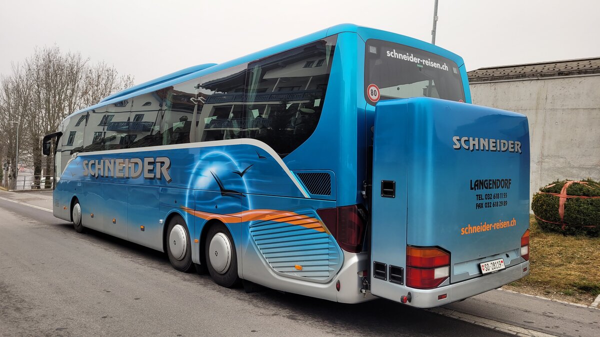Setra S 516 HD, SO 28119, in Laax, Schneider Reisen und Transport AG, Langendorf, Aufgenommen am 18. März 2022