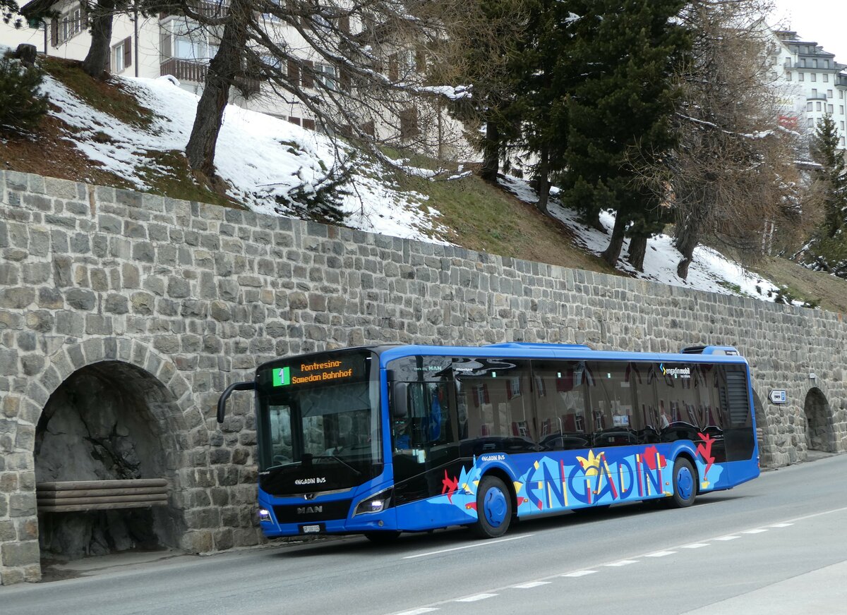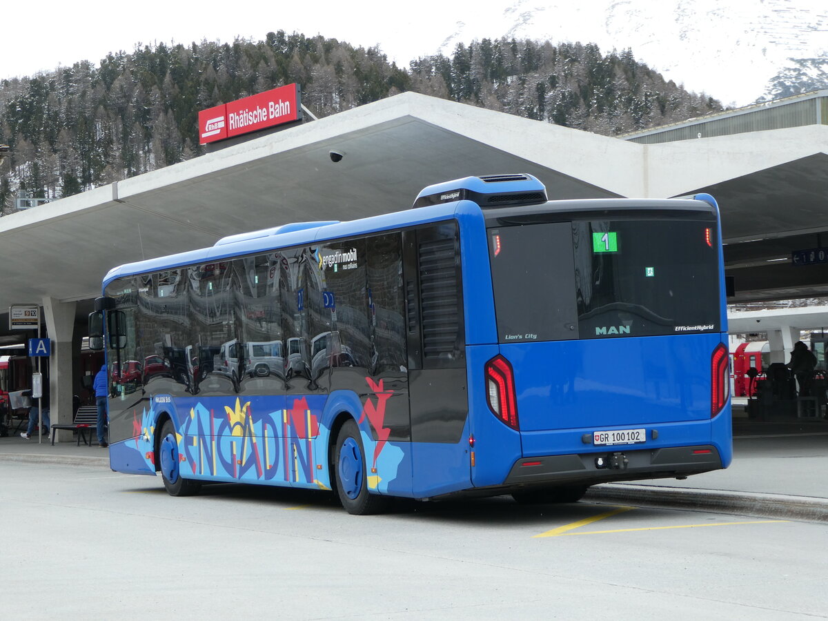 (248'622) - Engadin Bus, St. Moritz - Nr. 102/GR 100'102 - MAN am 15. April 2023 beim Bahnhof St. Moritz