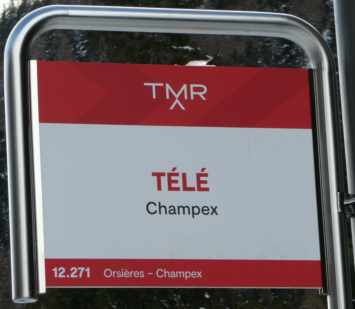 (243'403) - TMR-Haltestellenschild - Champex, TÉLÉ - am 3. Dezember 2022