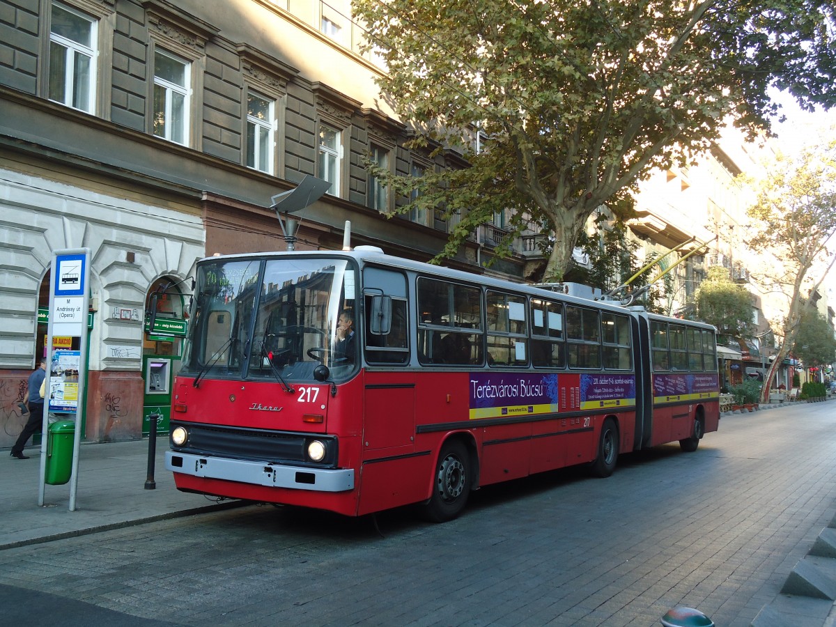 (136'274) - BKV Budapest - Nr. 217 - Ikarus Gelenktrolleybus am 3. Oktober 2011 in Budapest, M Andrássy út (Opera)
